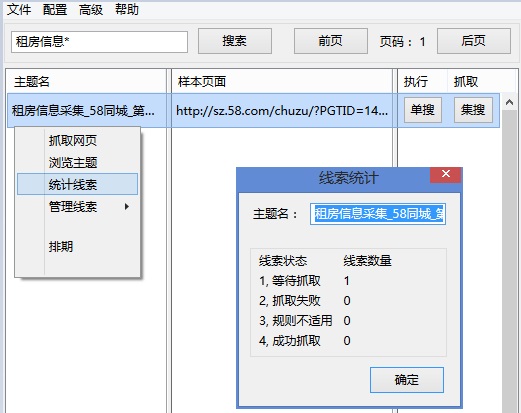 2)输入的线索数最好要<=等待抓取的线索数量,建议先统计一下规则有多少线索,操作:右击主题名,选择“统计线索”,查看等待抓取的线索有多少,如下图。