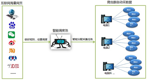 这是爬虫群并行抓取的一种特殊情形,利用这个功能,您可以低成本快速汇集海量数据。场景描述如下: