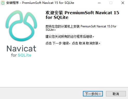 1、在知识兔下载并解压,双击运行“navicat150_sqlite_cs_x64.exe”,安装原程序,进入安装向导,点击下一步