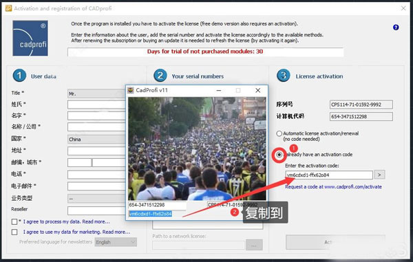 选择i already have a activation code,复制填入注册机计算好的激活代码即可自动激活
