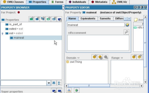 实例编辑(Instance editing):从这些类中,protégé自动产生交互式的形式,全用户或领域专家进入的有效实例成为可能。