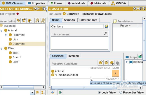 编辑肉食动物的属性。这里我们需要建立一个eat的子属性maineat(主要吃的是)