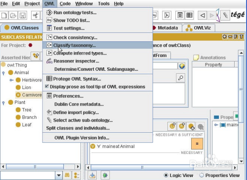 Protege使用JAVA和Open Source作为操作平台,可用于编制本体和知识库(Knowledge Base),protege可以根据使用者的需要进行定制,通过定制用户的界面以更好地适应新语言的使用;有可自行设置的数据输入模式,可以将protege 的内部表示转制成多种形式的文本表示格式,如:XML、RDF(S)、OIL、DAML、DAML+OIL、OWL等系统语言。Protege 工具本身没有嵌入推理工具,不能实现推理,但它具有很强的可扩展性,可以插入插件来扩展一些特殊的功能如推理、提问、XML转换等。Protege 分享可扩展的独立平台环境,用于构建和编辑本体以及知识库。Protege开放源码,运行多重继承,分享本体建设的基本功能,而且它采用图形化界面,界面风格与OilEd一样,都与WINDOWS操作系统的风格一致,模块划分清晰。另外,protege本体结构和OntoEdit一样,也是以树形的等级体系结构来显示,用户可以通过点击相应的项目来增加或编辑类、子类、实例等,所以用户使用protege不需要掌握具体的本体表示语言,是用户比较容易学习、使用的本体开发工具。由于其优秀的设计和众多的插件,其已经成为最广泛的本体论编辑器之一,它已成为国内外众多本体研究机构的首选工具。