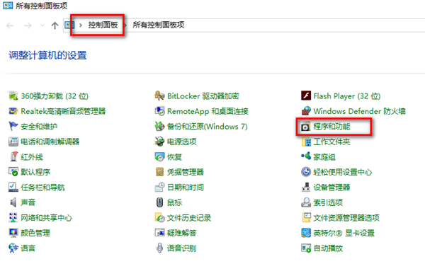 2.进入控制面板后,我们再找到“程序和功能”并点击进入