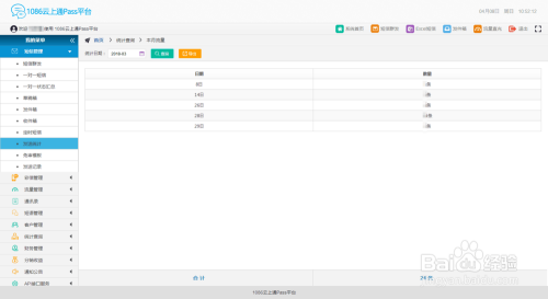 在【发送统计】页面可以查看此账户的短信发送情况。