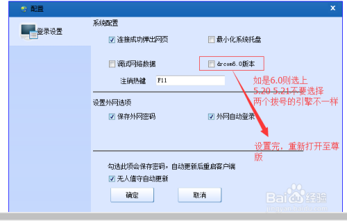 drcom至尊版 支持6.0 如果是6.0 则在设置对话框选择6.0版本,
