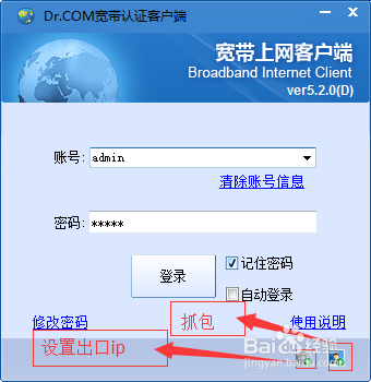 DR.com宽带认证客户端一般是学校办的移动宽带上网,需要安装的客户端,只有插上网线,运行这个客户端的时候才能上网,这个登录时需要账号和密码的,在安装客户端的时候,要根据具体情况进行设置,就是学校分配IP地址,全称是linux局域网Dr.COM宽带认证客户端