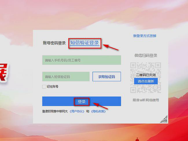 3、还可以点击【短信验证登录】填写手机号及验证码,进行【登录】。