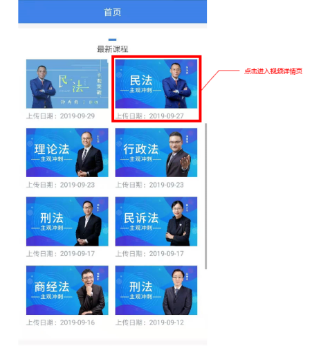 点击-首页-最新课程,进入对应视频详情页面