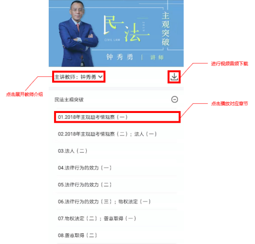 瑞达法考电脑版是一款专门法考用户准备的学习辅助工具,这款软件招募名师、汇聚题库为用户打造最雄厚的备考内容,并且全程课程随便听,名师课程全部免费,用户无需花一分钱。此外还可以进行法律法规查询,用户在通过法考之后依旧可以使用这款软件当做查询工具。