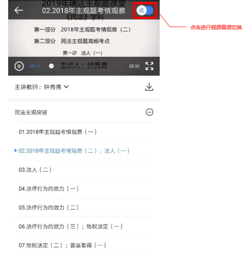 视频开始播放后,点击音视频切换按钮可进行音视频切换播放