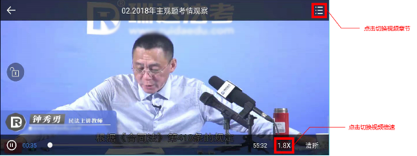 全屏播放后,点击右上角章节按钮,切换视频章节;点击右下角倍速按钮切换播放倍速