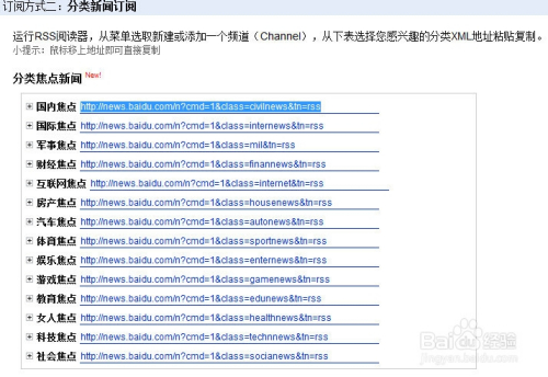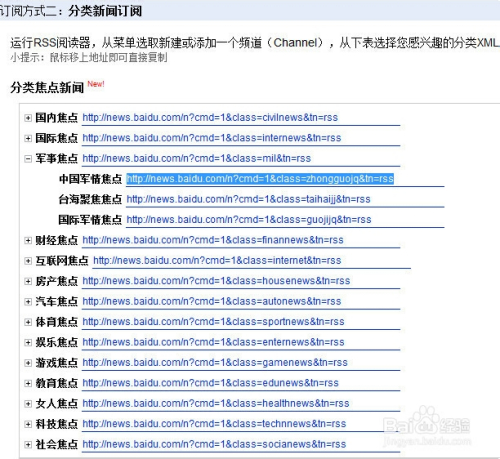 首先我们需要找到目标站的RSS的页面位置,下面就以百度新闻的RSS采集为示范。