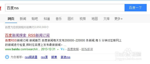 一般情况下,大型的网站的都会有自己的rss订阅功能的,但是我们不容易发现,那么我们就百度“网站名+rss”