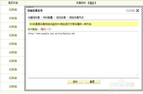 点击完保持设置以后,我们会发现我们的采集任务状态就显示采集的RSS地址。