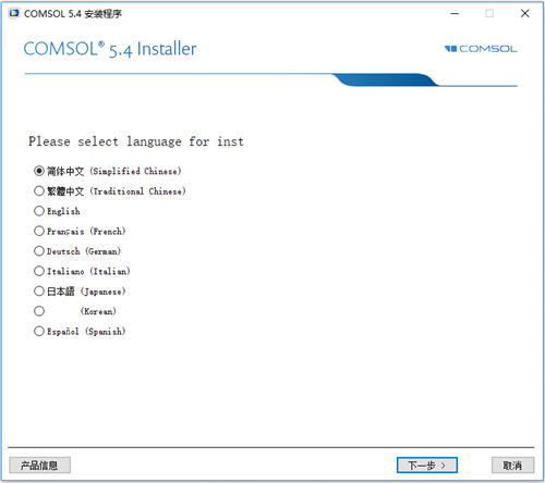 1,加载COMSOL.5.4.0.225_DVD.iso镜像文件,双击Setup,选择安装语言简体中文