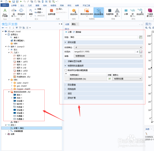 第二步:确定模拟仿真所需要的物理场,如图所示。点击导航栏,右边有物理场功能提示,根据提示内容点击右下角研究。