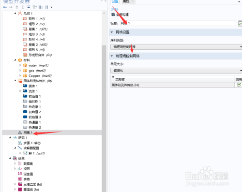 第六步:合理划分网格大小,如图所示。可以根据物理场控制划分网格规模,也可以个性化设置。