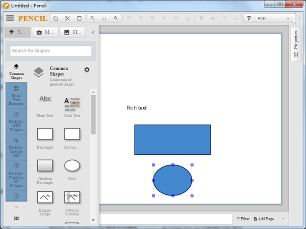 Pencil分享各种内置的形状集合,用于绘制不同类型的用户界面,从桌面到移动平台。 从2.0.2开始,Pencil随Android和iOS UI模板预先安装。 这使得通过简单的安装开始应用程序变得更加容易。流行的绘图功能也在Pencil中实现,以简化绘图操作.