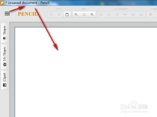 我们可以看到软件的左上角显示unsaved document,文档还没保存。