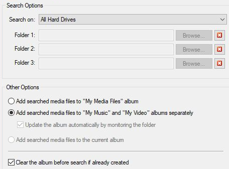 将搜索的媒体文件单独添加到“我的音乐”和“我的视频”
