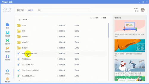 登录账号后,点击云文档,打开优云文档,实现云端文档在线编辑,内容实时保存;