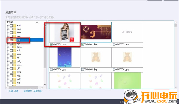 5.扫描完成后,我们可以在页面左侧找到相应的文件类型,再点击右侧预览窗口中需要恢复的文件并对其进行勾选,然后点击页面右下角的“下一步”按钮。