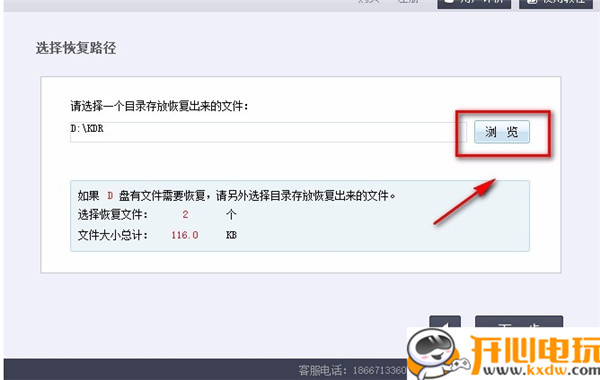 6.接下来进入到选择恢复路径选择页面,在页面右侧有一个“浏览”按钮,我们点击该按钮进入到浏览文件夹页面选择文件的保存位置。