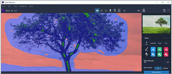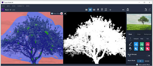 对于像树这种有复杂边缘的对象,应告诉Mask AI更多的细节以便后续计算的准确性。