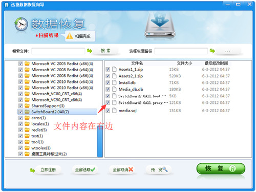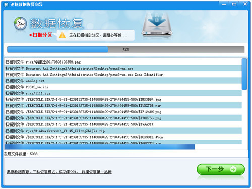 迅捷数据恢复软件可以恢复删除的文件、清空回收站的文件、格式化分区中的文件、Ghost重装系统误操作丢失的文件等。