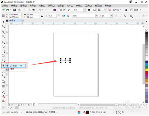 启动并新建一个【CDR文档】,在左侧点击【文本】,在画板中输入想制作的文字。