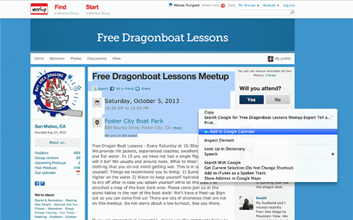 5.还可以从某个网站上检查大某个事件,直接添加到谷歌日历中,如下图所示