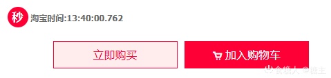 4.立刻购买上方的淘宝系统时间,辅助手动秒杀和调试下单提前量调整,时间旁边的秒字是新增的功能,方便网络差,插件无法同步淘宝时间的用户手动秒杀。点秒就马上下单,后面的步骤插件会自动处理。请不要提前太多或频繁使用,会被限制。