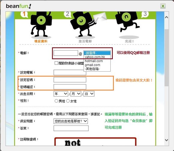 我们登入beanfun帐号 备注:【申请账号时 邮箱就是beanfun帐号】*