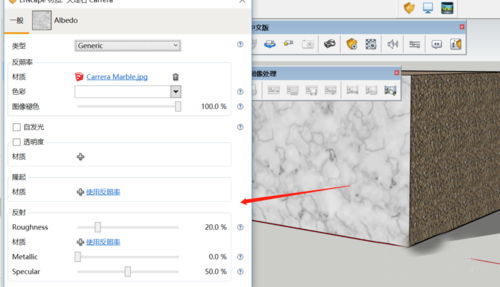 5.在材质界面点击材质然后调整反光度和一些材质特有的参数,比如大理石就有光泽和反射