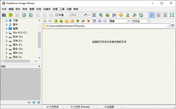 打开FastStone Image Viewer,操作界面和ACDSee非常相似。左上方是文件树状目录窗口,左下方是图片预览窗口,右侧是当前文件夹内容窗口。这样的设计使你可以快速切换目录,迅速进行图片浏览。