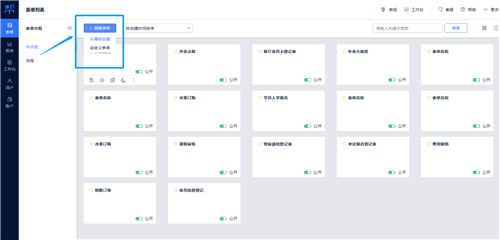 1、自定义表单:通过拖拽相对应的字段创建自己的表单。