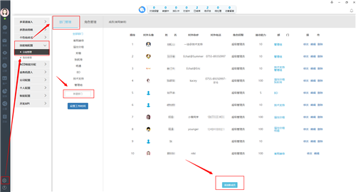 客服管理人员可在系统内自由添加新客服人员,并对其角色权限及其他属性进行相关设置。详细操作如下: