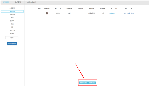 回到“部门管理”界面,选中的客服部门全部的成员信息同样会显示在右侧,下面可选择“添加已有成员”,或“添加新成员”;添加已有成员即可从目前所有成员中添加想要的成员,添加新成员就如上述一般会弹出新成员信息编辑框进行填写(区别是已经自动勾选了选中的部门)。
