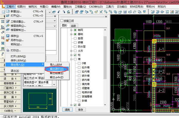 1、先在鲁班软件中导出算量工程文件(.tozj格式文件),如图1所示。