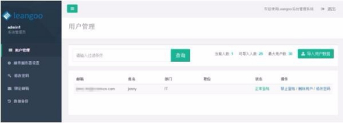 管理员可以将 leangoo 用户的账号、密码导入到 leangoo 中,导入的用户数量不能超过购买的最大用户数,如下图所示: