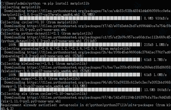 2.输入python -m pip install matplotlib进行自动的安装,系统会自动下载安装包