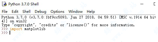 3.进入到python idle中,运行import matplotlib,如下图所示,如果没有报错,就证明安装成功