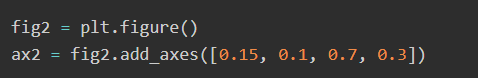 2.如果要在任意位置创建Axes,只需使用add_axes()方法,该方法接受[left, bottom, width, height]值的列表,以 0~1 的图形相对坐标为单位: