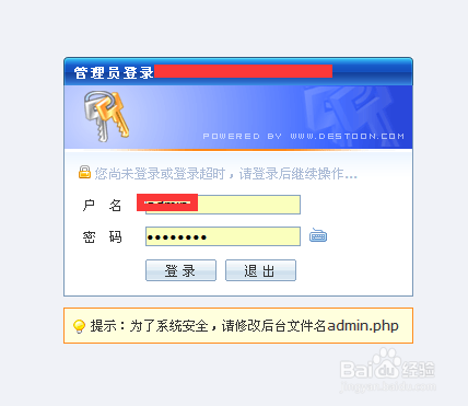 DESTOON安装好后,先把网站根目录下的install文件夹删除掉,以避免重新安装。把后台登陆文件admin.php修改,提高系统的安全。