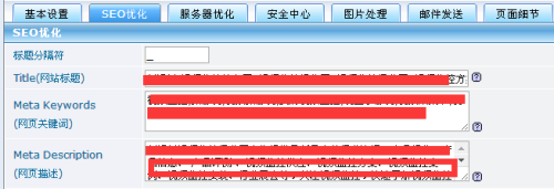 网站设置大概就那些了,下面还有更重要的就是SEO优化部分。网站标题,网站关键字和网站描述这些写好之后,特别是新站请不要轻易的更改,如果实在是想更改小编建议:等三个月之后再进行修。以免被搜索引擎惩罚。