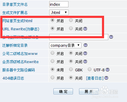接下来是设置网站伪静态,其实是为了增强搜索引擎的友好。其实也是SEO部分,购买服务器时,或者设置这里的时候,最后时问下你的服务器商家,系统是否支持伪静态。如果不支持就关闭“网站首页生成html”和“URL Rewrite(伪静态)”