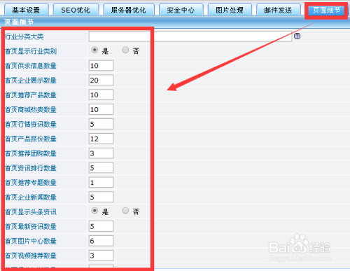 页面细节设置,这里是设置首页的功能模块的显示数量。根据自己需要设置即可。
