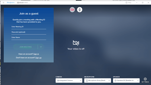 由于我们没有 BlueJeans 帐号,仅是客人身份,因此要点击「JOIN AS GUEST」。