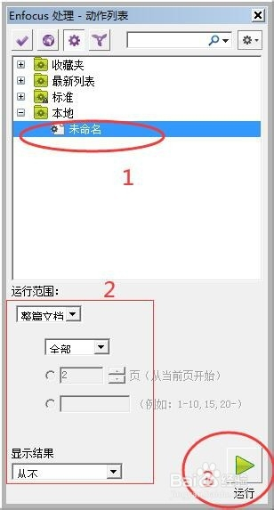 1、在“本地”中选择“未命名”动作,就是刚刚我们建的新动作,此时也可以对它进行重命名(当有多个动作时,可以方便管理)。
